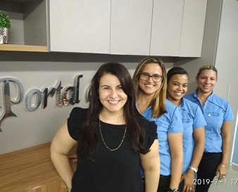 A empresária Karla Ferrarezi com sua equipe da Portal da Luz Ivangélia Carelli, Paula Andrade e Miriainy Neves...